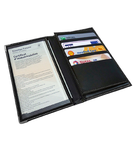 Plus qu'un simple porte carte grise, notre produit dispose d'emplacements pour stocker plusieurs autres cartes. Que ce soient vos cartes de lavage, bancaires ou tout autre type , vous aurez toujours un espace suffisant pour toutes vos nécessités.