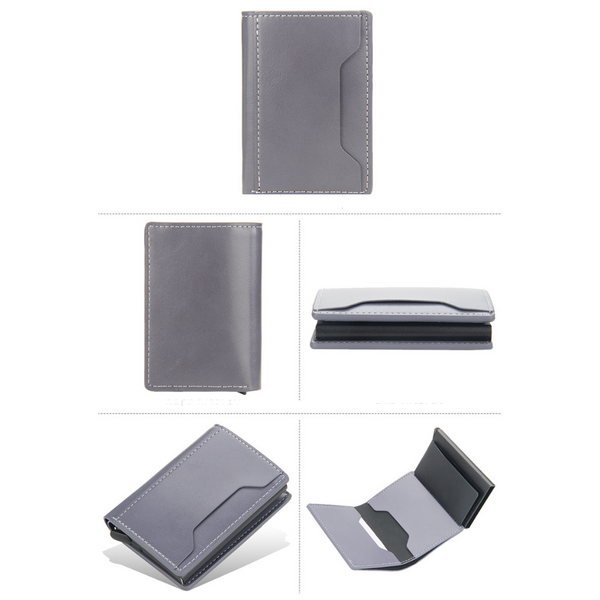 Porte-Cartes Élégant en Cuir PU Gris avec Protection RFID et Pince à Billets
